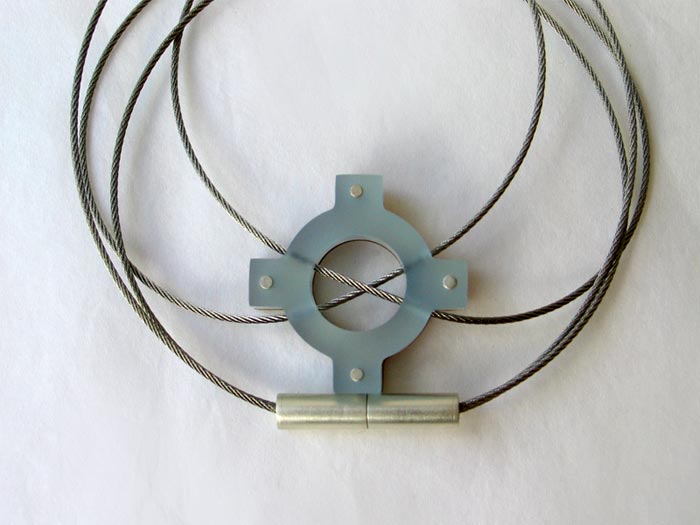 AD Necklace - silver / blue perspex / birch ply / steel cable